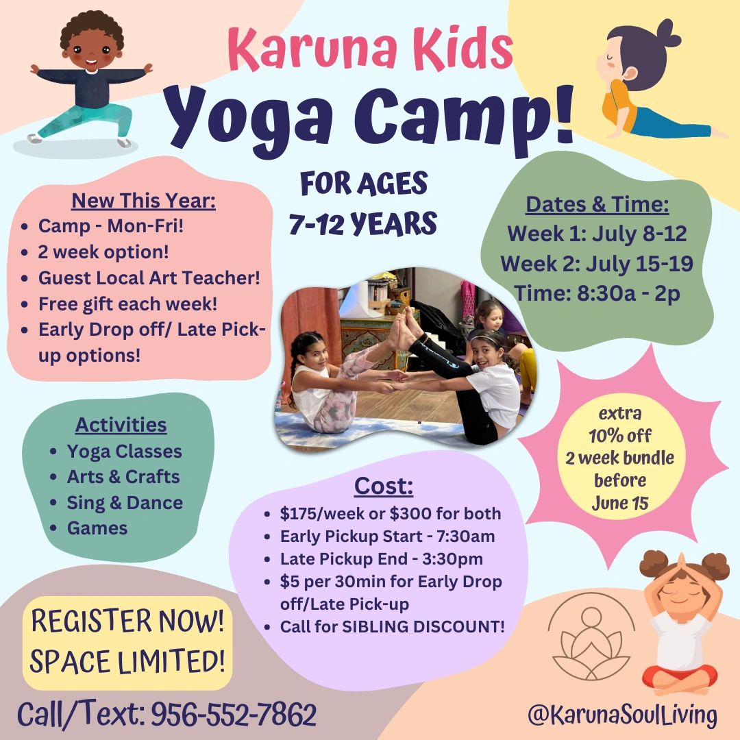 Having a hard time trying to find things for your kids to do later in the summer? Well, sign them up to have fun learning about yoga, mindfulness, self-awareness, and meditation! They'll enjoy fun yoga poses, games, arts & crafts, singing and dancing!